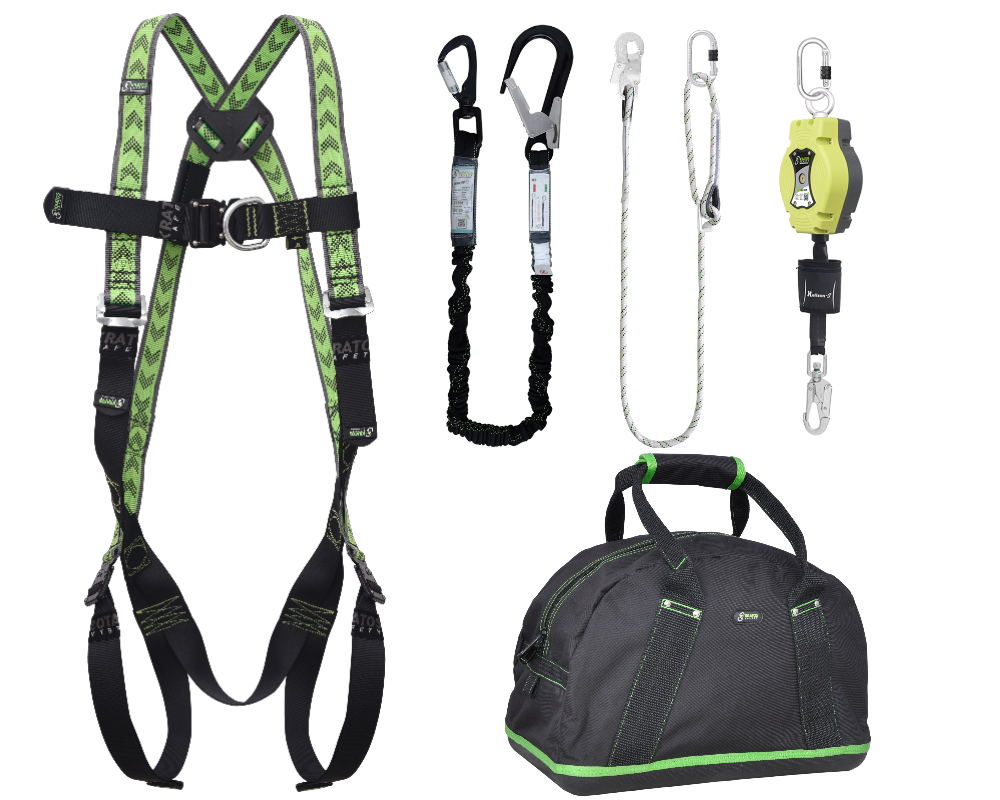 Kratos Complete set valbeveiliging Allround Antival harnas Valstopblok 6m Werkpositielijn 2m Leeflijn in elastische band