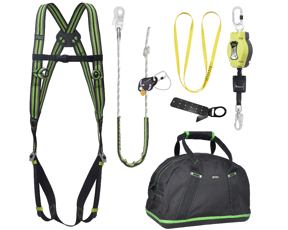Kratos Complete set valbeveiliging Basic Daken Valstopblok 6m Werkpositielijn +klem 5m Ankerstrop Ankerpunt voor op hout