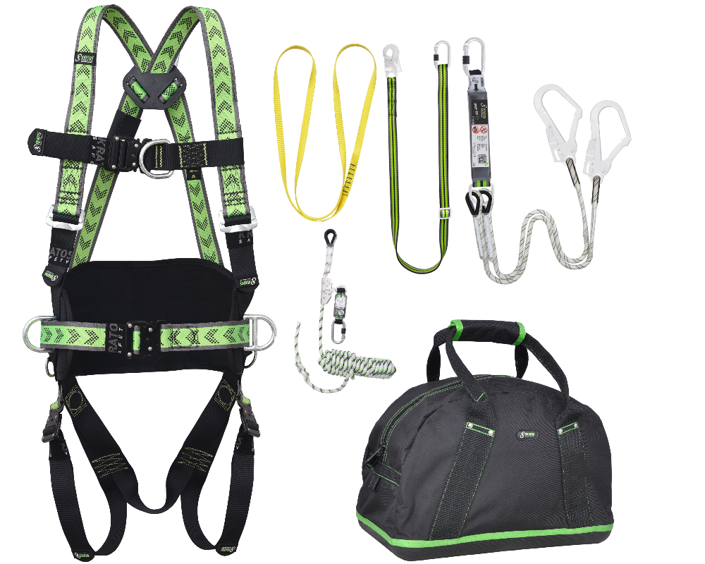 Kratos Complete set valbeveiliging Y-leeflijn 1.5m met veiligheidslijn 10m en werkpositielijn 2m Harnas 2 aanhechtingpnt.